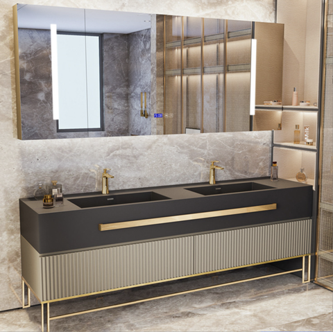 Armoire de salle de bain en pierre frittée à forte valeur ajoutée armoire de toilette de salle de bain en MDF avec armoire à miroir intelligente