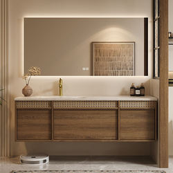 バスルーム木製/人工石バニティキャビネットシングル/ダブルシンクミラー付きバスルーム洗面化粧台