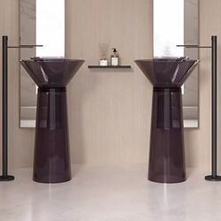 アメリカの単色透明ガラス自立型バスルームバニティベイスン、固体表面台座ポリッシュ仕上げ、洗浄用
